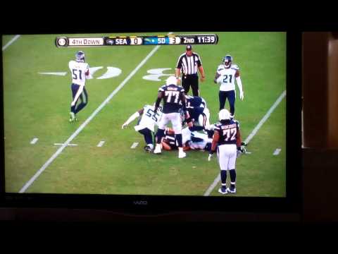 That was at least the start of it. The Charger lineman #77 was penalized under a new Point of Emphasis that you can't pull someone off the pile.